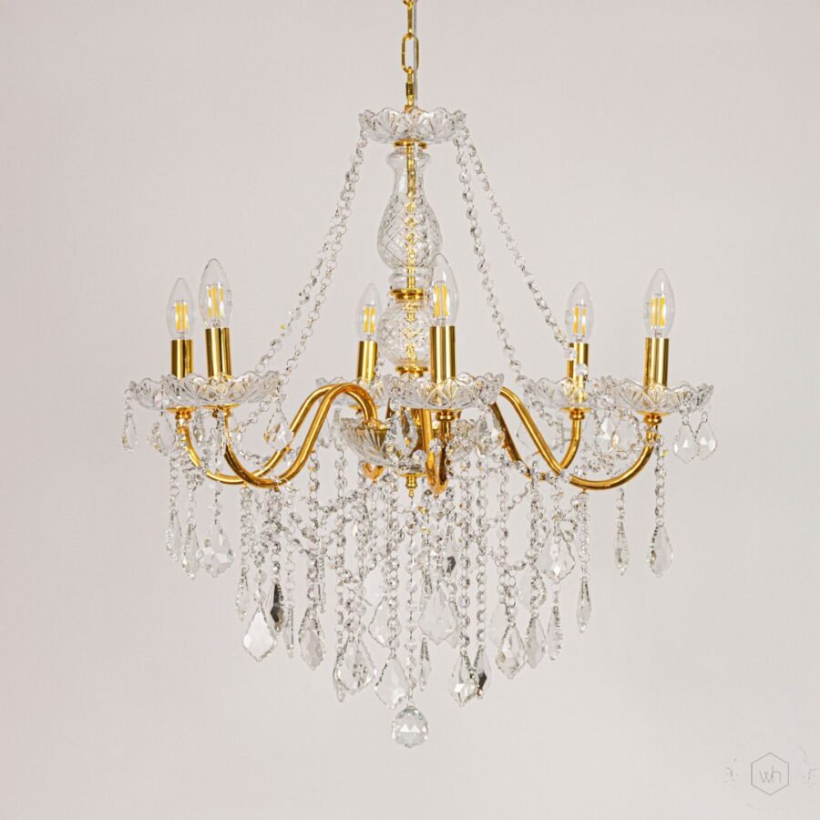 Be the first to review “Averly 6-Light Crystal Chandelier – Gold”