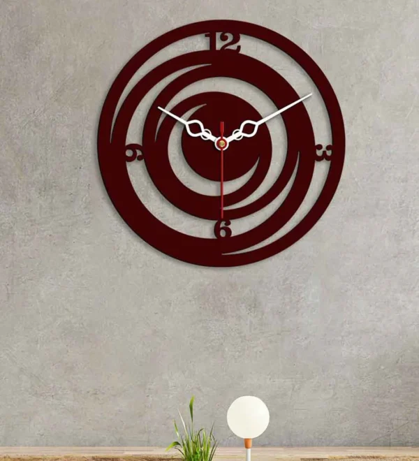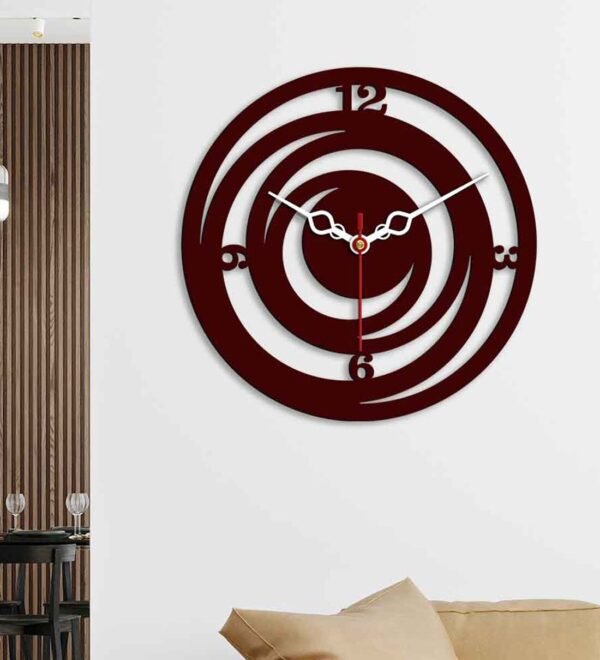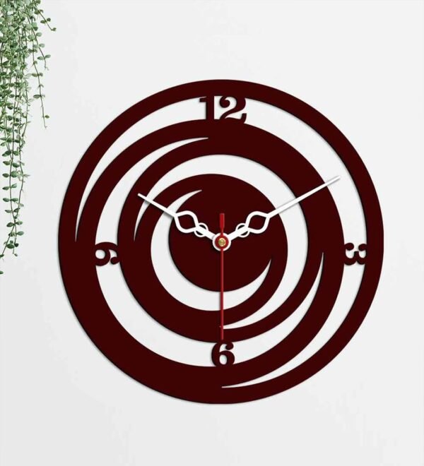 Bring a touch of modern sophistication to your home with this Circle Loops Shape Brown Wood MDF Wall Clock. Featuring an elegant circular loop design, this clock combines the natural warmth of brown wood with a contemporary shape. Crafted from durable MDF, this timepiece seamlessly blends function with stylish decor, making it perfect for living rooms, dining rooms, or office spaces. The minimalist yet striking design makes it an ideal choice for modern interiors.