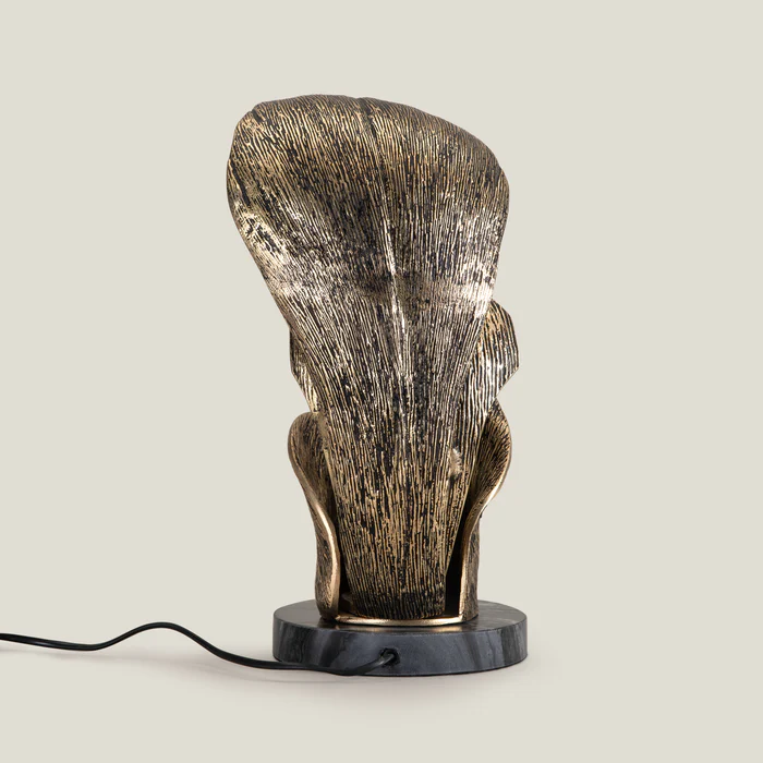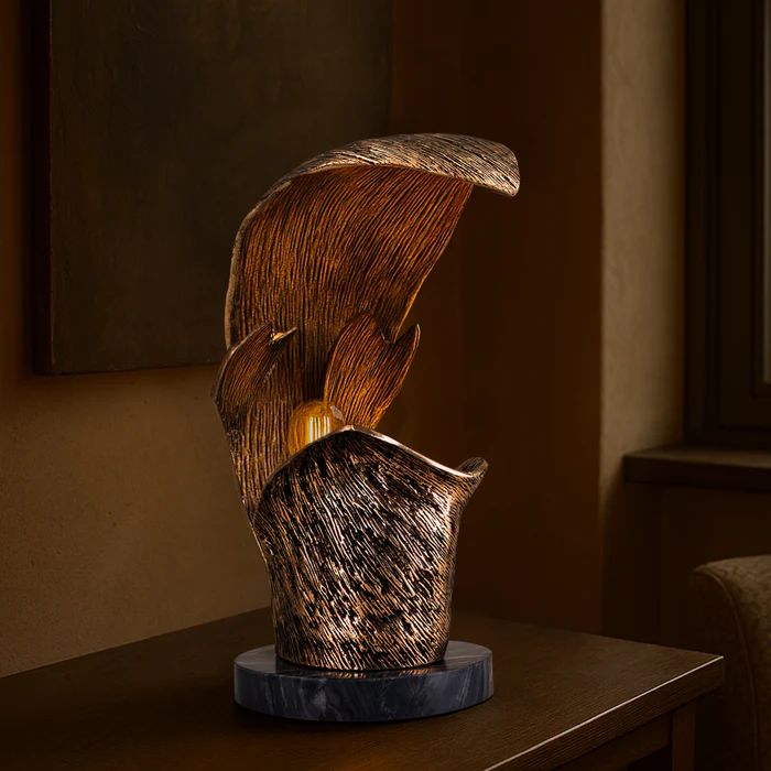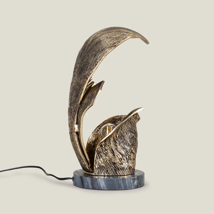 Our Flos Brass Metal Table Lamp is an artful fusion of sculpture and illumination. Its flowing, organic form in textured brass rises gracefully from a polished marble base, echoing the elegance of a blooming petal. Designed to cast a warm, ambient glow, this statement piece adds both drama and sophistication to any space — a luminous sculpture by day, an enchanting light source by night.