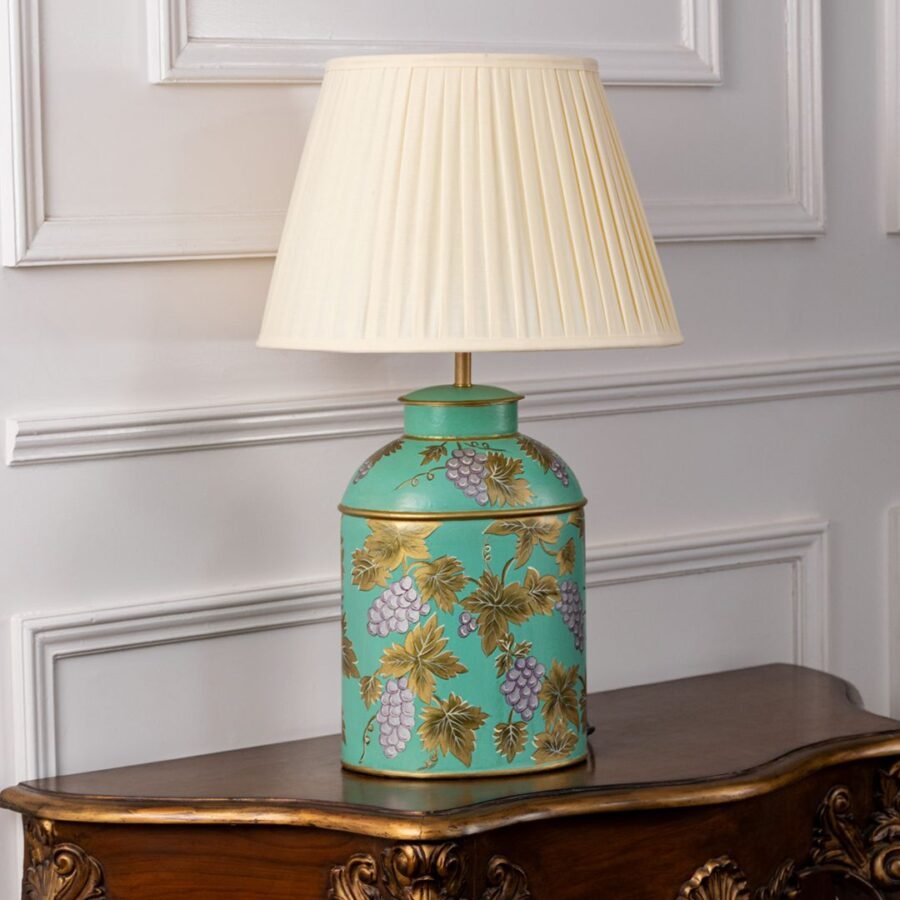 Grape Vine Blue Metal Table Lamp – Off White Pleated Lamp shade