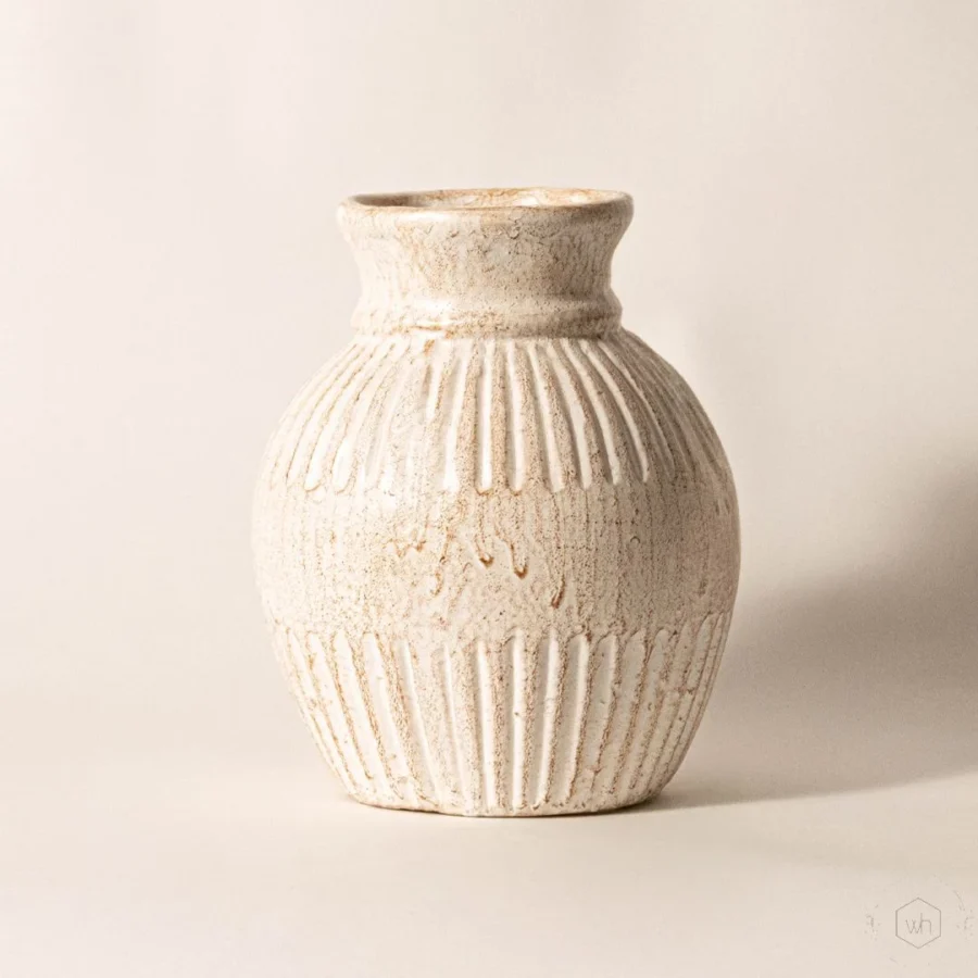The Solstice Terracotta Vase – White is a handcrafted décor accent that blends natural terracotta texture with a clean white finish. Its minimalist yet rustic design makes it a versatile styling piece for farmhouse, boho, and modern interiors. Perfect for dried stems, pampas grass, or fresh flowers, this vase adds charm and elegance to any corner of your home.