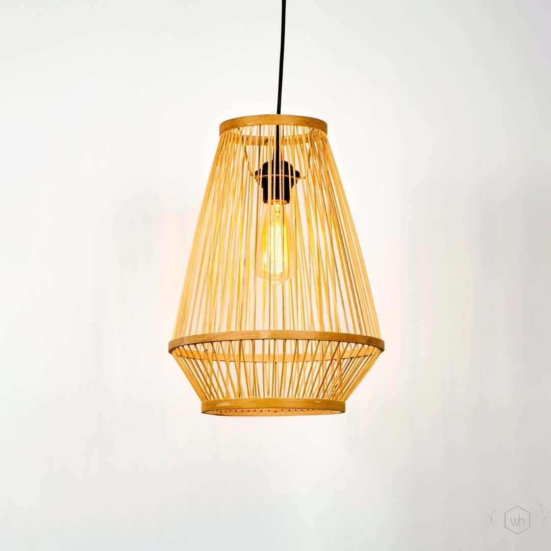 Elevate your living space with the natural charm of the Trumpet Bamboo Pendant Lamp. Handcrafted from sustainable bamboo, this exquisite lamp casts a soft, ambient glow that transforms any room into a cozy retreat.